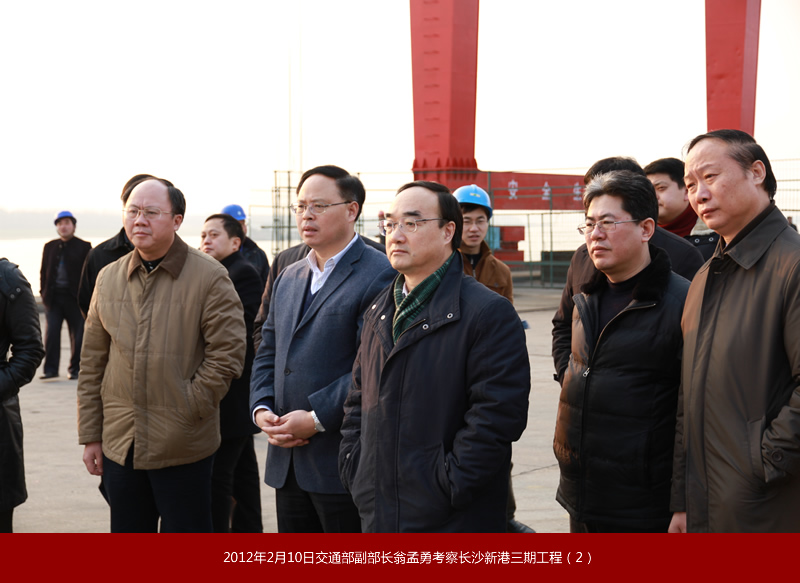 2012年2月10日,交通運(yùn)輸部黨組副書記、副部長翁孟勇來長沙新港考察時強(qiáng)調(diào):長沙新港變化一次比一次大,當(dāng)前要借助湖南加大水運(yùn)發(fā)展力度的有利契機(jī),加快樞紐、港口和湘江2000噸級航道提升建設(shè),更好地服務(wù)經(jīng)濟(jì)社會和航運(yùn)的持續(xù)發(fā)展。